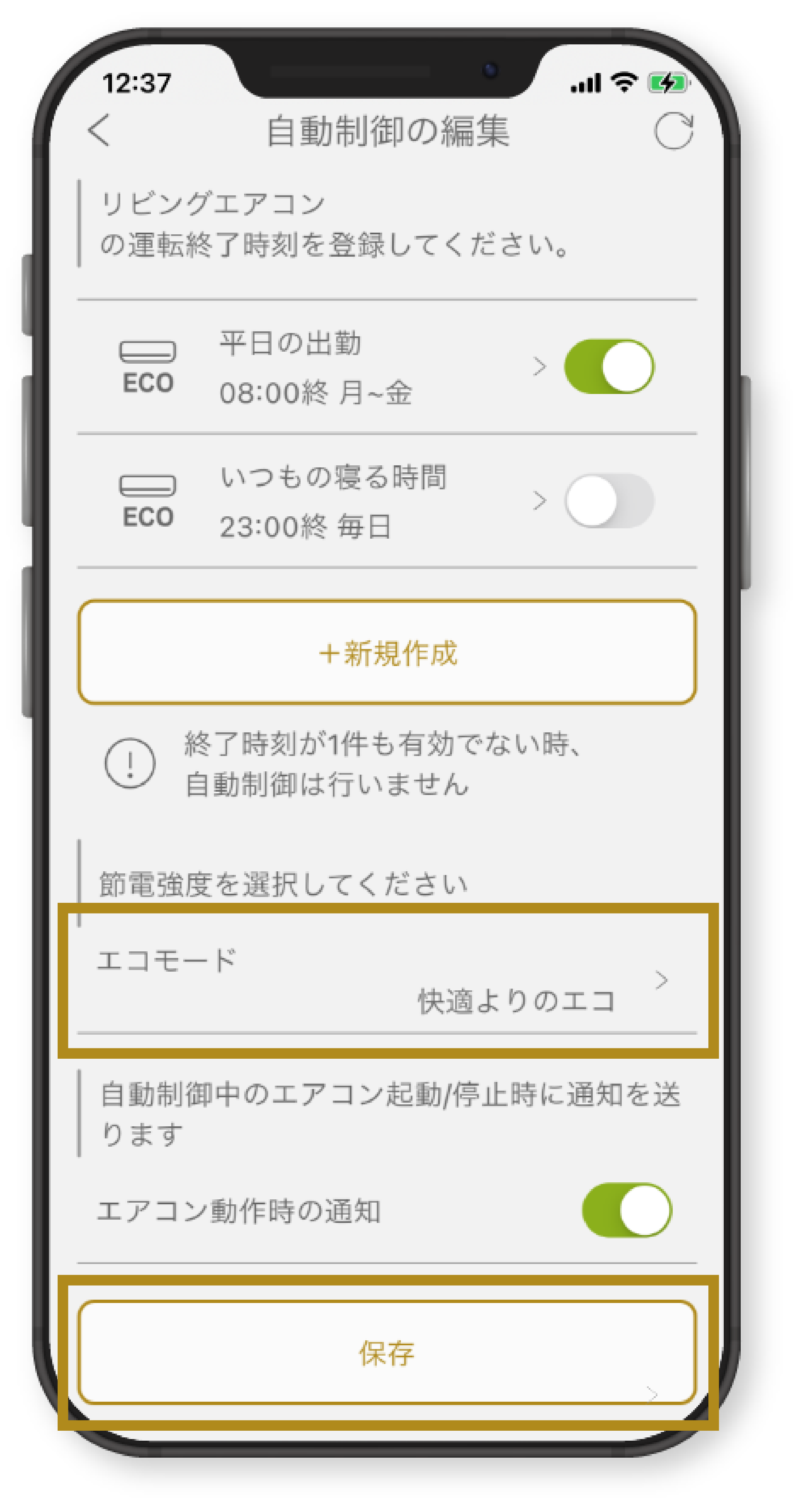 エアコンが停止してエアコン自動制御(β版)が終了します。
